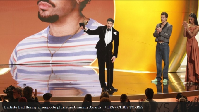 Ce dimanche, le chanteur portoricain Bad Bunny a remporté trois Grammy Awards ce 1er février. À 31 ans, il devient le premier artiste chantant en espagnol à remporter le Grammy de l’album de l’année. L’artiste a délivré ce dimanche un discours chargé de symbole contre la politique anti-immigration menée par Donald Trump.